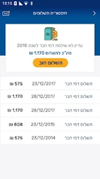 בשלב הראשון, המשתמשים יכולים לצפות בהתחייבויותיהם לאיגוד העורכים, לשלם דמי חברות באינטרנט או להוריד שובר תשלום לתשלום בלתי מקוון. האפליקציה מספקת גם תכונת היסטוריית תשלומים, המאפשרת למשתמשים לעקוב אחר העסקאות הקודמות שלהם. בנוסף, המשתמשים יכולים לבקש ולקבל אישור חברות ישירות באמצעות דואר אלקטרוני, וגם להוריד שובר להזמנת כרטיס חברות חדש במקרה של אובדן או נזק.